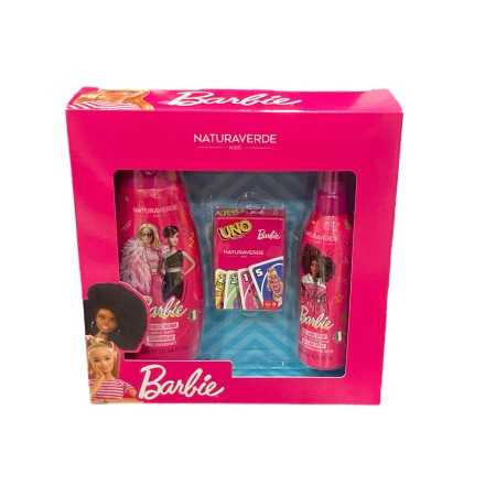NATURAVERDE SET REGALO BARBIE CARTOON CON BALSAMO SPRAY BAGNOSCHIUMA E UNO CARDS